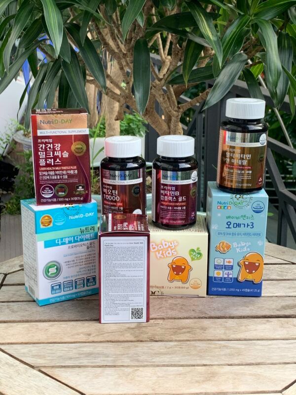 – Chế phẩm hỗn hợp vitamin D3 [Vitamin D3 (cholecalciferol): 10mcg, gum Arabic, sucrose, bột ngô, dầu cọ, silicon dioxide, DL-alpha-tocopherol]: 4.8mg