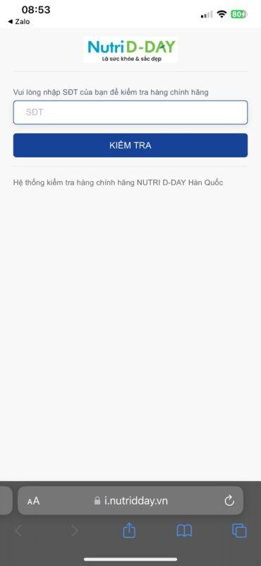 Bước 3: Nhập số điện thoại của bạn. Mỗi lần quét bạn sẽ được thưởng 10 điểm vào hệ thống và được đổi quà khi đủ điểm. Hệ thống sẽ hiển thị thông tin sản phẩm bạn đang mua bao gồm: ảnh, tên sản phẩm, thành phần, công dụng, mã số giấy đăng ký tại cục An toàn thực phẩm, mã số thực phẩm chức năng do bộ An toàn thực phẩm & Dược phẩm Hàn Quốc cấp, tên đại lý/NPP bán hàng, ngày bán…