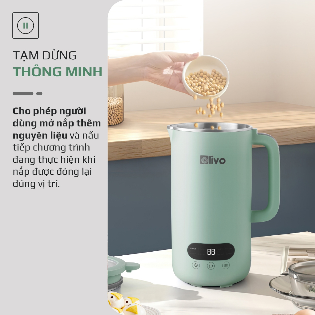 – Thấu hiểu được điều đó OLIVO luôn đặt tiêu chí an toàn và chất lượng lên hàng đầu vậy nên không chỉ với OLIVO CB1000 mà tất cả các dòng sản phẩm máy xay nấu đa năng, máy làm sữa hạt của OLIVO đều được trang bị tính năng chống trào tuyệt đối.