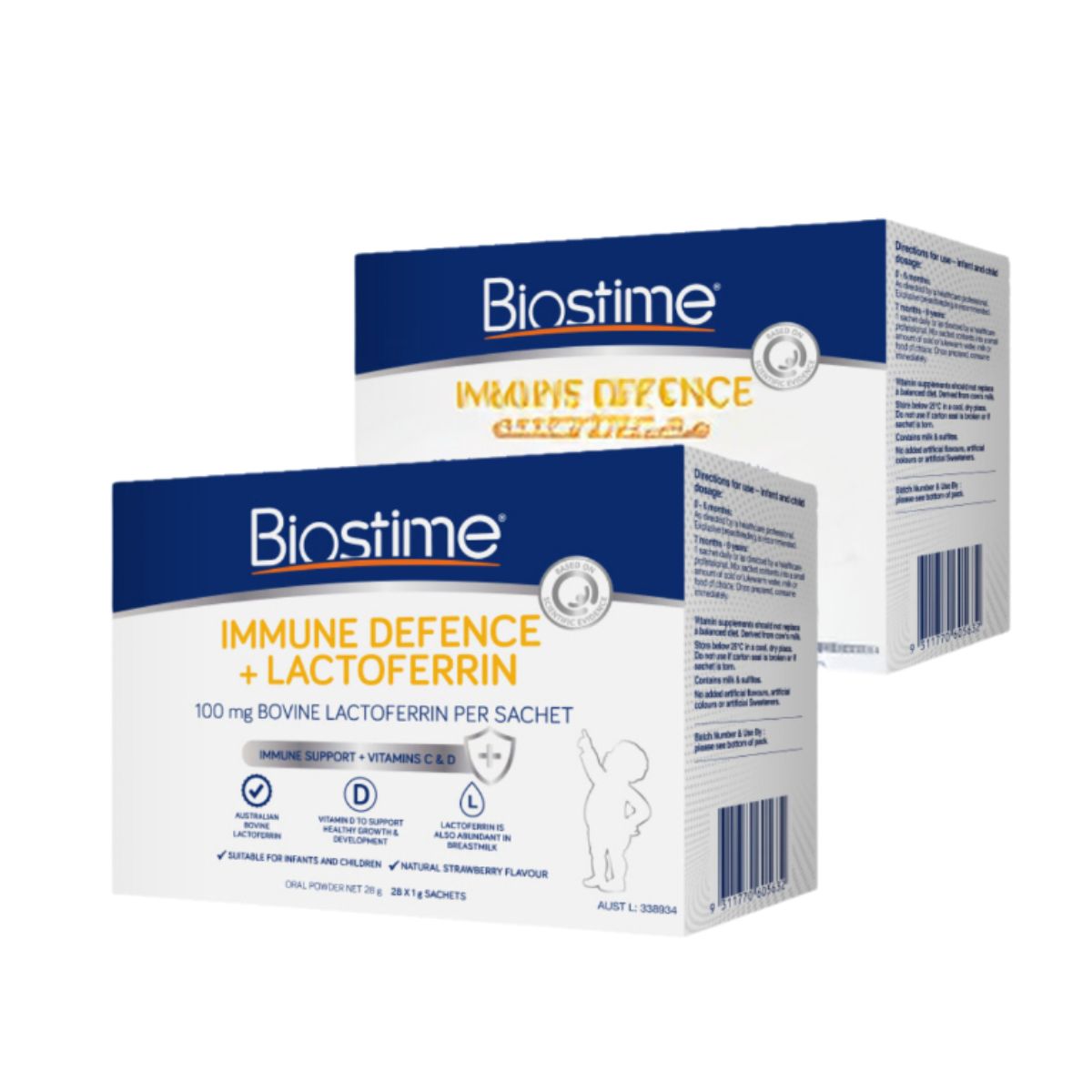 Biostime Immune Defence + Lactoferrin được sản xuất với Lactoferrin từ bò Úc và chứa Vitamin C & D để hỗ trợ hệ thống miễn dịch khỏe mạnh, tăng trưởng và phát triển khỏe mạnh. Lactoferrin là một loại protein có nhiều trong sữa mẹ, đặc biệt là sữa non. Nó có thể ức chế sự phát triển của vi khuẩn có hại trong ruột bằng cách tự gắn vào chất sắt dư thừa trong cơ thể mà vi khuẩn xấu ăn vào.